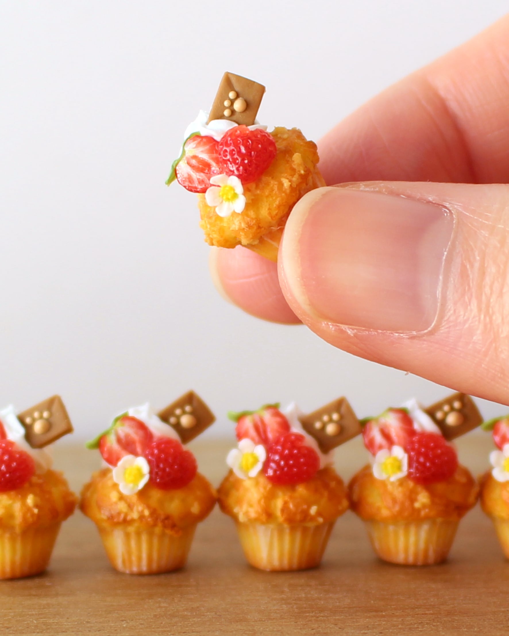 いちごの花は可憐な花びらや奥行きのある花芯(かしん)の表現に苦戦しましたが、ミニチュアならではの可愛いビジュアルになったかと思います。