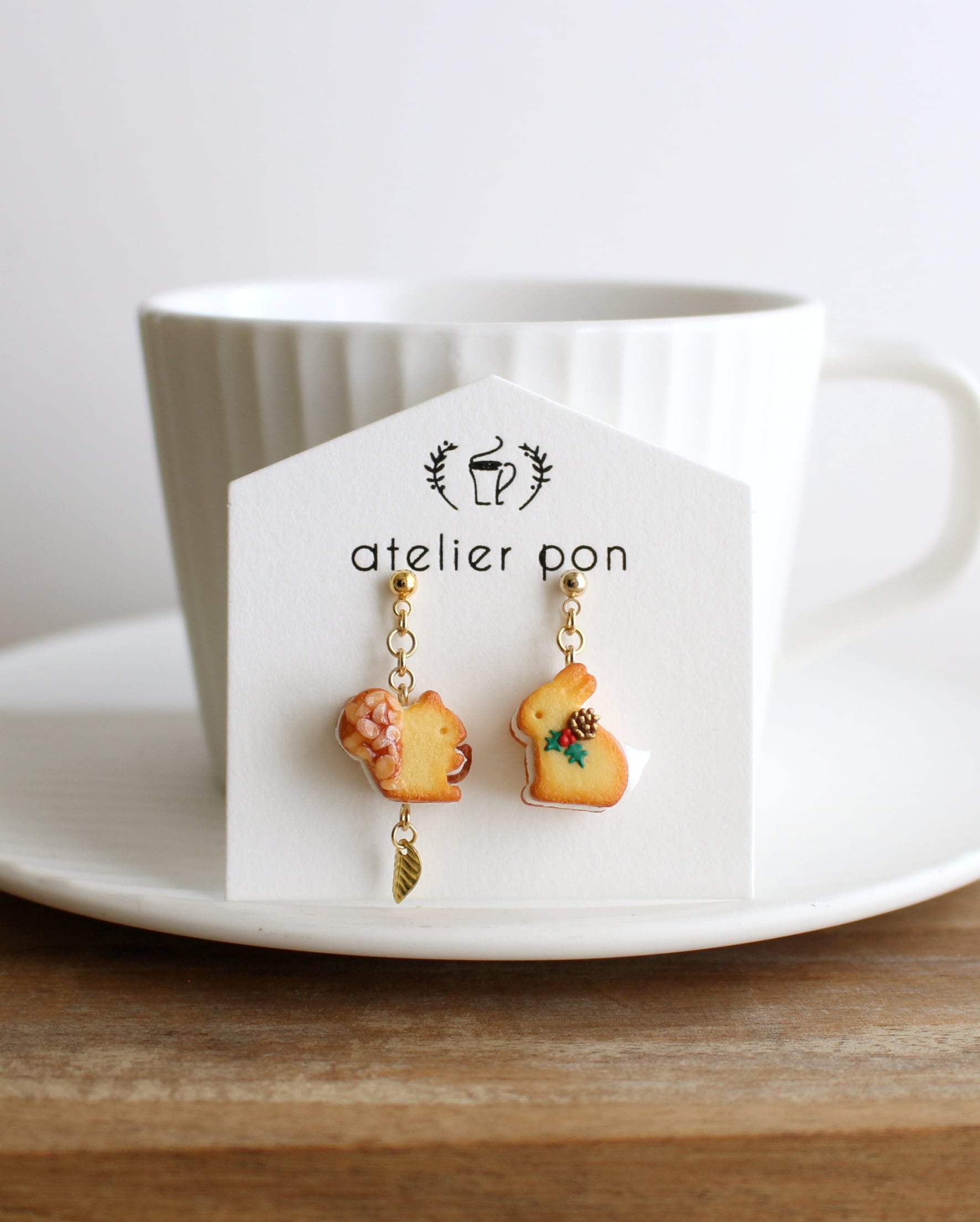 【予約販売】りすとうさぎのバターサンドアクセサリー(ピアス&イヤリング)